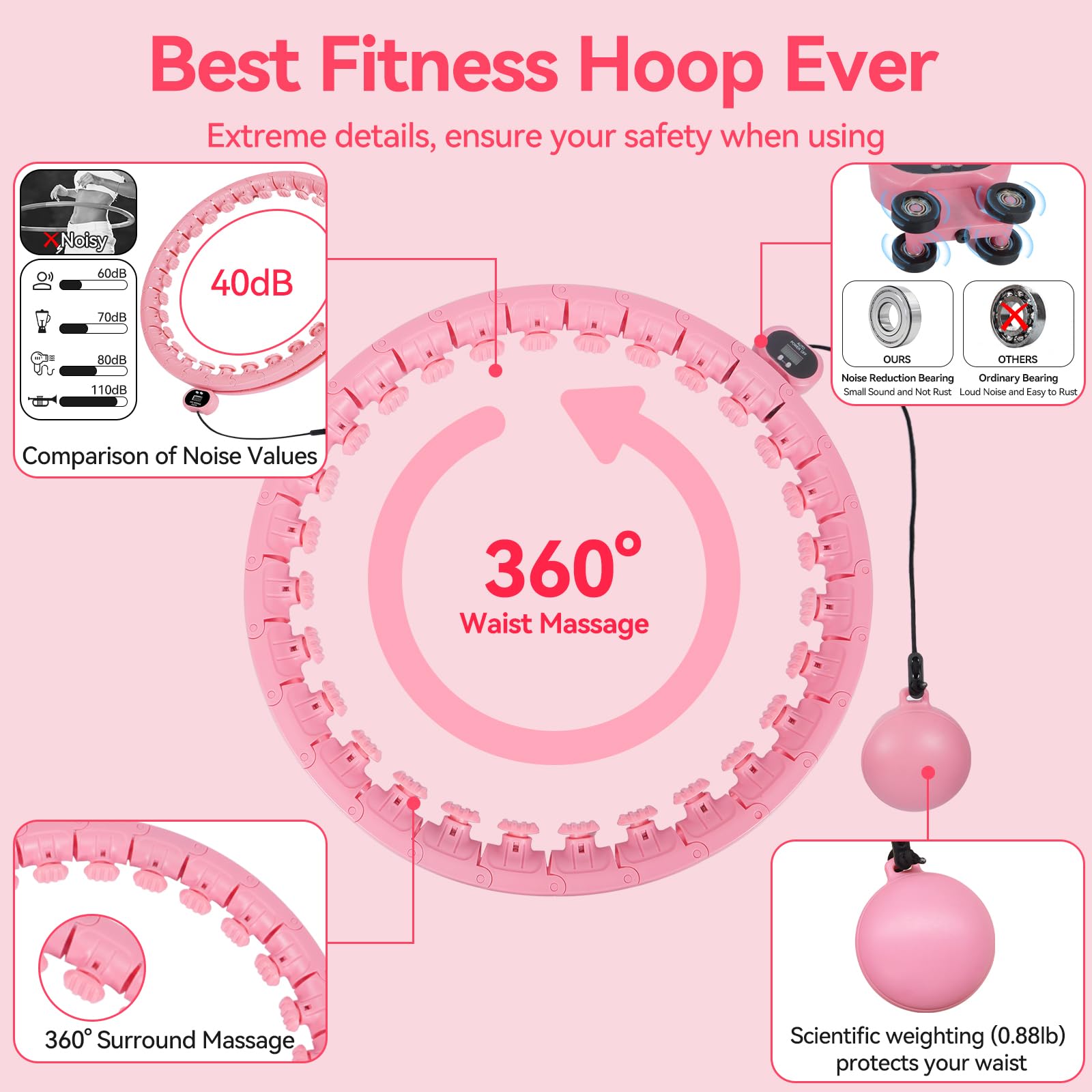 - 【Fitness & Massage points】Humixx Smart weighted Hoop has massage point on each knot. Feeling 360° waist massage with extraordinary fitness and muscle relaxation effects that help you burn fat and calories, massage knots relieve waist pressure and relax mood and achieve the ideal body shaping effect. Moreover, massage points can achieve many acupuncture points to promote blood circulation and achieve a better slimming effect.