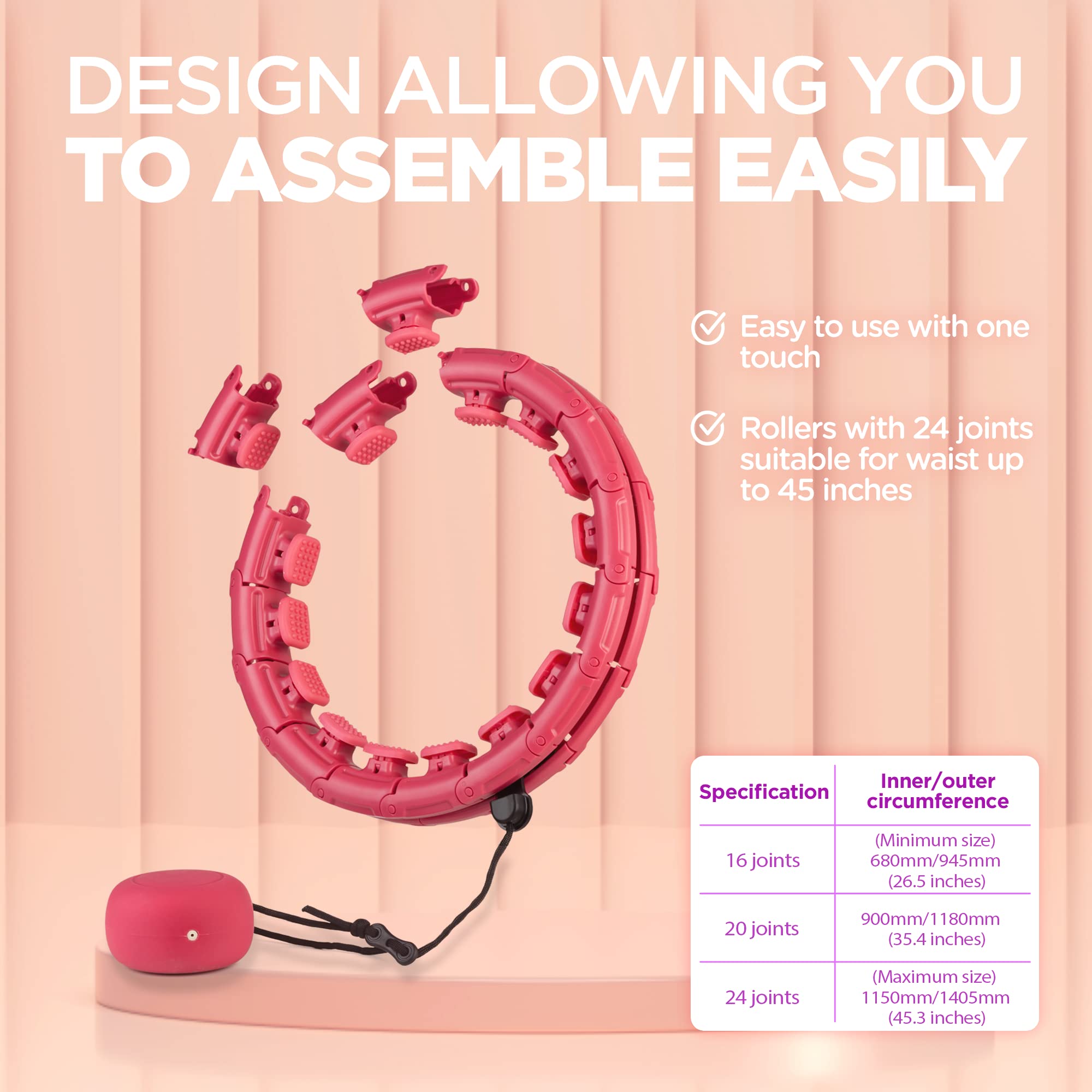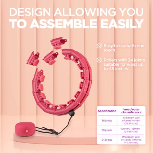 - ADJUSTABLE, and BUILT FOR YOUR COMFORT – Fits waists ranging from 25–45 INCHES, with 24 expansion joints to adjust your smart hoop to the perfect CUSTOMIZED SIZE.