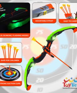 - LIGHT UP THE NIGHT: Not just your average toy bow! Our bow features three vibrant lighting settings, enhancing the archery experience and ensuring the fun doesn’t stop even when the sun goes down. An ideal toy bow and arrow for nighttime adventures.
