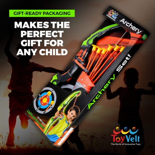 - ALL-INCLUSIVE ARCHERY FUN: The set includes everything a young archer might need: a luminous LED bow and arrow for kids 8-12, 6 suction cup arrows, a 10-inch target, and a quiver with an adjustable strap ensuring the perfect fit. Whether you’re in search of a bow and arrow for kids 4-6 or kids bow and arrow for boys 4-7, this set covers all the bases.