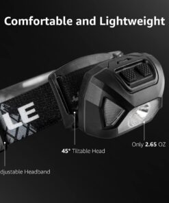 - Lightweight & Comfortable – Weighing only 2.65oz, this headlamp is lightweight and comfortable to wear, with a sweat-proof elastic headband and 45° adjustable angle that fits both adults and kids. Whether you’re camping, hiking, or running, this headlamp is the perfect choice for a comfortable and long-lasting lighting solution.