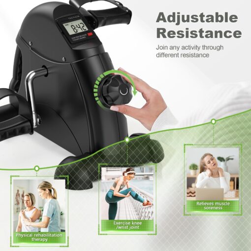 Mini Exercise Bike, Under Desk Bike Pedal Exerciser Portable Foot Cycle Arm & Leg Peddler Machine with LCD Screen Displays