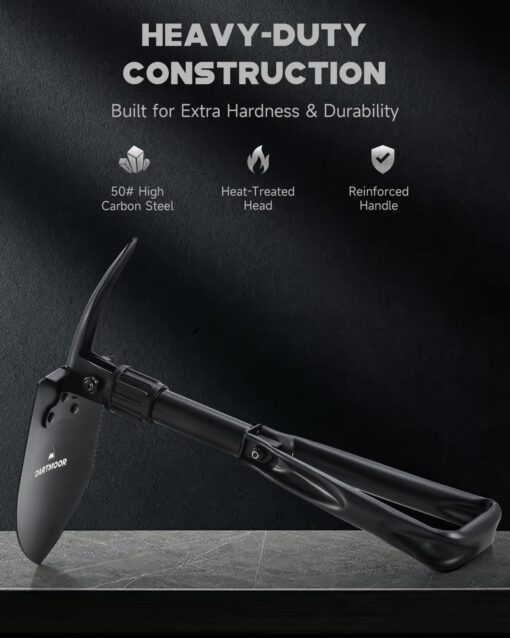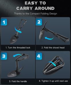- PREMIUM MATERIALS: Carefully constructed with high-carbon steel, this heat-treated mini folding camp shovel is built to last with rust-resistance & anti-deformation. The tactical military shovel is a rugged tool for digging, shoveling, sawing, chopping, and entrenching