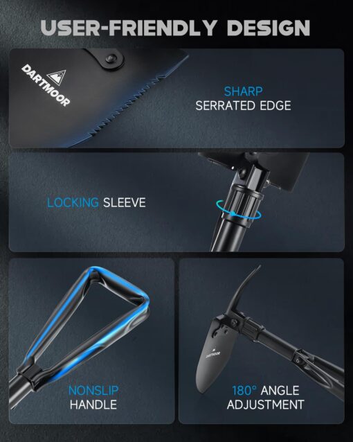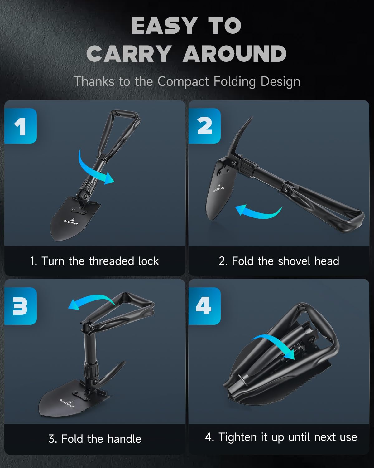 - THICKENED CUTTING BLADE: Thanks to the reinforced blade our foldable rescue shovel can dig into gravel with ease – a must-have for backyards, gardens, farmland, campers, forest rangers, and outdoorsmen