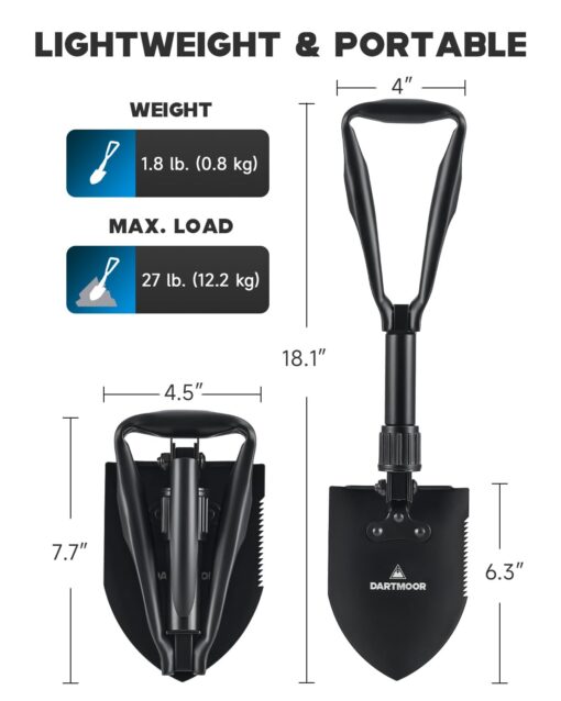 - LIGHTWEIGHT & EASY TO STORE: This military shovel weighs only 28 oz and comes with a nylon carry case (11.8” x 6.5”) so you can take this on the go anywhere