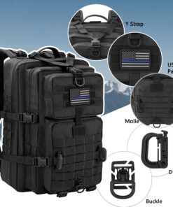 - ARMY MOLLE SYSTEM – The front and both sides come with MOLLE system, Molle webbing throughout for attaching additional tactical pouches or gear as 3 day assault pack backpack combat molle backpack. The Y strap and buckle on the front is great to roll up a sweatshirt or light jacket. And the straps at the bottom can be used to hold a tent or sleeping pad.