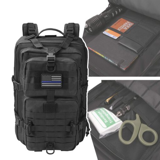 - LARGE CAPACITY – Military tactical backpack size approx.:12″*20″*13″ / 30*50*33CM (W*H*D) Capacity:40L, This tactical military assault backpack is made of durable and water-resistant High Density fabric, With Large Capacity allow you to carry all your tactical gears, it can be used as 3 day assault pack, bug out bag backpack, emergency backpack, combat backpack, range bag, molle emt backpack, EDC outdoor backpack, hunting backpack, travel backpack, survival backpack or trekking backpack