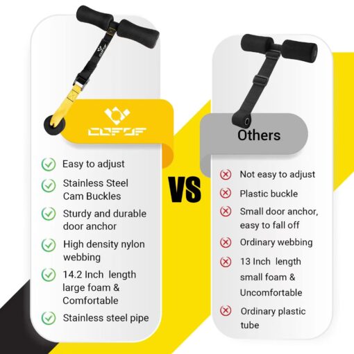 - [New Upgrade Nordic Hamstring Curl] Our Nordic Curl is made of industrial grade stainless steel with a length of 14.2 inches. Our foam is 1inch thick and 5.9 inches long and is ergonomically designed to make your feet more comfortable when using them. Our Nordic curl strap adjustment length of 7.1″ – 20.6″, both adults and children, can meet the needs of daily exercise. Our door anchors are made of high-quality 2.7 inch diameter foam that securely attaches to the bottom of the door frame.
