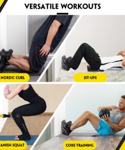 - [Versatile Workouts Nordic Hamstring Curl] Our nordic Curl strap can be used for sit-ups, core training, razor curls, spanish squats, core twists and more. Our sets do not come with mat. You need to prepare your own soft mat such as a foam mat, yoga mat or pillow to train to prevent knee pain. Beginners can use equipment such as resistance bands, spikes, swiss balls, or AB rollers to help them practice. If you feel unable to support, stop the exercise immediately and take a proper rest.