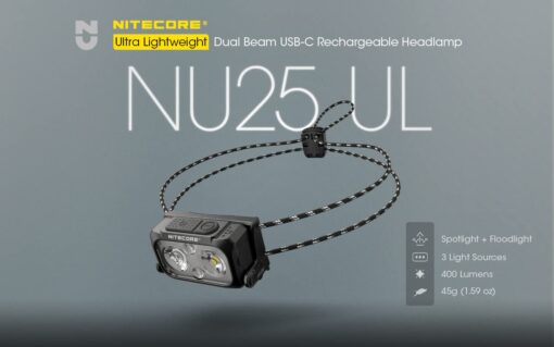 - PACKAGE CONTENTS – NITECORE NU25 400 Lumen UL edition, paracord, USB Cable, LumenTac Organizer