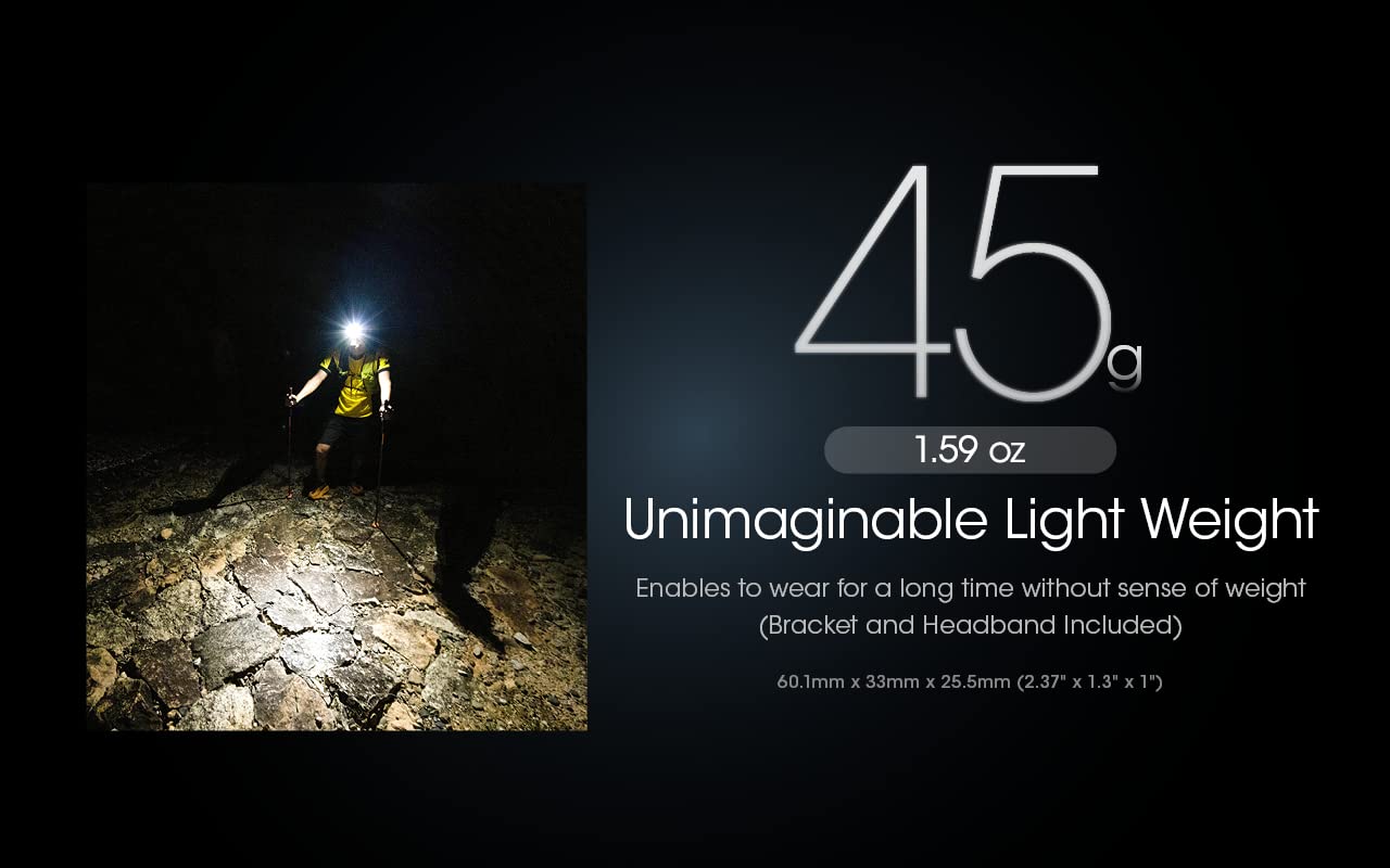 - BRIGHT LIGHTWEIGHT HEADLAMP- the NU25 headlamp is capable of a 400 lumen max, Instead of traditional headband, it comes with a pair of paracord, which make NU25 even more lightweight, perfect for backpacking, biking, jogging and trekking.