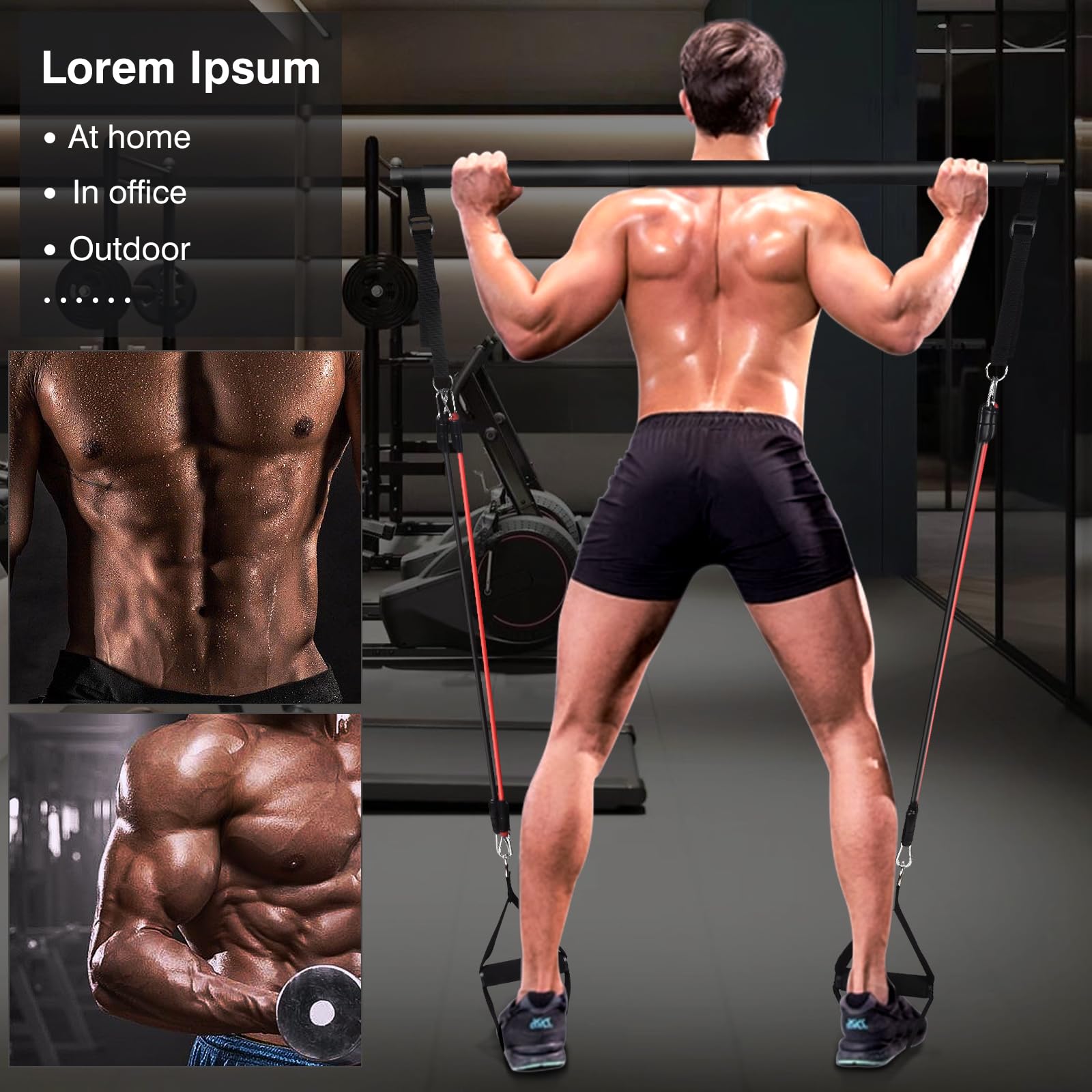 - Easily Adapts to Your Height: This unisex exercise equipment for home can be quickly adjusted to serve tall & short people. Twist the workout bar to wrap the bands around it to shorten them if you’re under 5’5” & you’re ready to break a sweat!