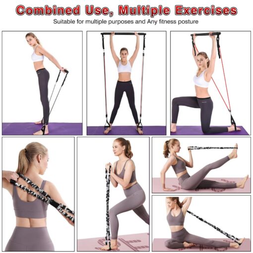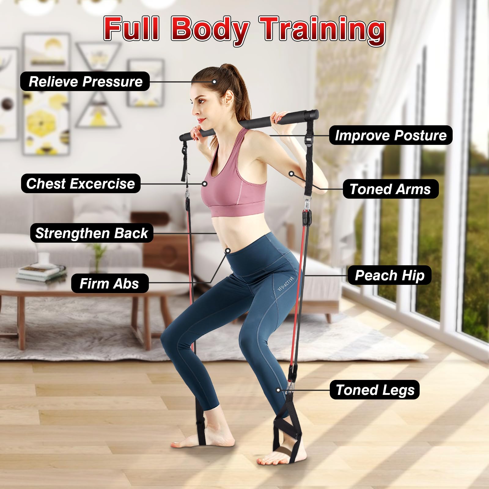 - All-in-one Full Body Workout: Pilates Bar is designed as an all-in-one fitness equipment that can shape the body, exercise muscles, reduce weight, and provide exercises that can be performed without a gym. They have similar functions as barbells, rowing machines, tension bands, yoga kits, and other equipment . You can use it to open your shoulders, beautify your back, say goodbye to butterfly arms, abdomen vest line, shape the S-shaped curve, and create a peach hip !
