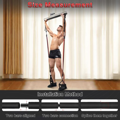 - High Quality Yoga Pilates Bar Kit: Our Pilates bar consists of three steel tubes and is equipped with high-density anti-slip protective padding for stable and safe movement even when sweating. Additionally, it comes with 4 high-resistance bands made of natural latex (2 red 30 lb., 2 black 50 lb). Arbitrarily match resistance bands of different strengths to meet the weight required for various exercises.