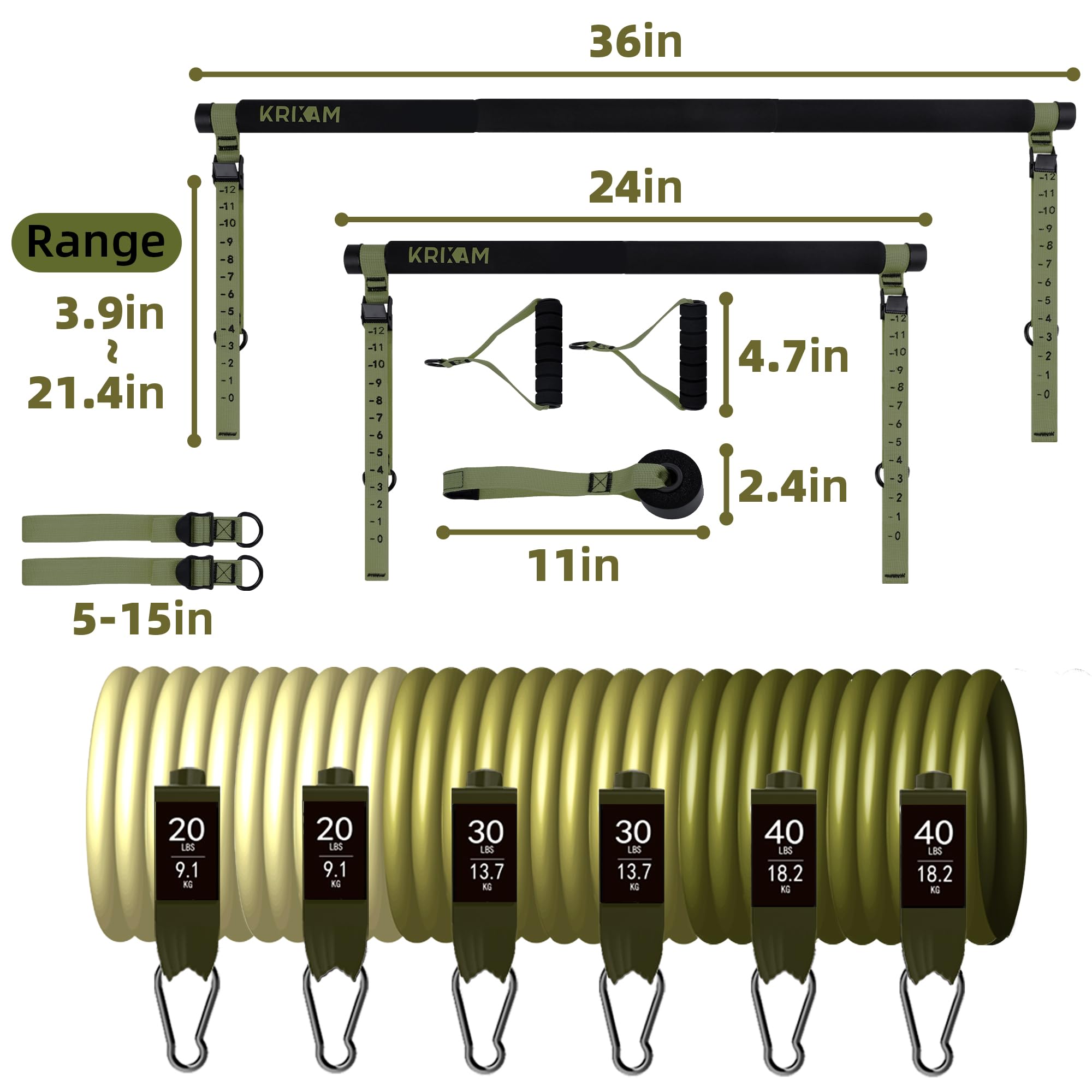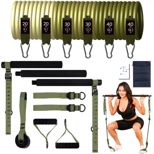 - ALL IN ONE FOR WHOLE BODY EXERCISE: KRIXAM provides a professional pilates bar kit to satisfy exercises that you need. And it offers different pounds of resistance bands and accessories for choosing, in order to shape your whole body without going to gym. Just say goodbye to obesity and got a S-shaped curve from now.
