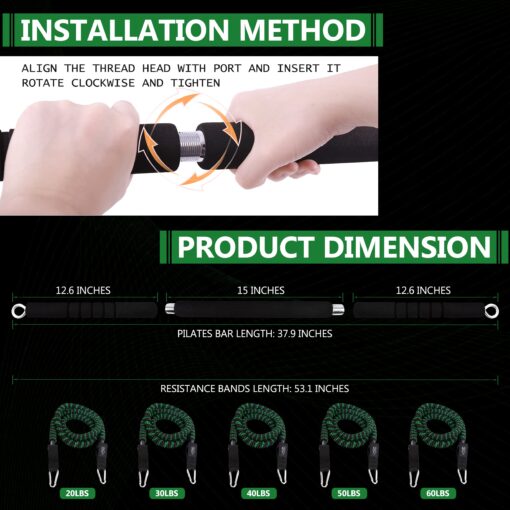 - SPACE SAVING: Pilates bar kits with resistance bands are easy to install and disassemble. You can store them without taking up too much space. The lightweight and portable design allows you to exercise at home, office, etc. You can also take it when traveling. You will have a sexy body in just half an hour a day.