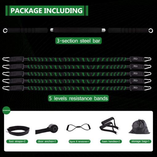 - 100% SATISFACTION SERVICE: We make sure you got Pilates bar kit has 5 resistance bands, 2 foam handles, 1 door anchor, 2 ankle straps, 1 three-section steel bar, 1 eight tensioner and 1 storage bag. Feel free to contact us if you got any problems or questions, and we got a whole lovely customer support team behind you.