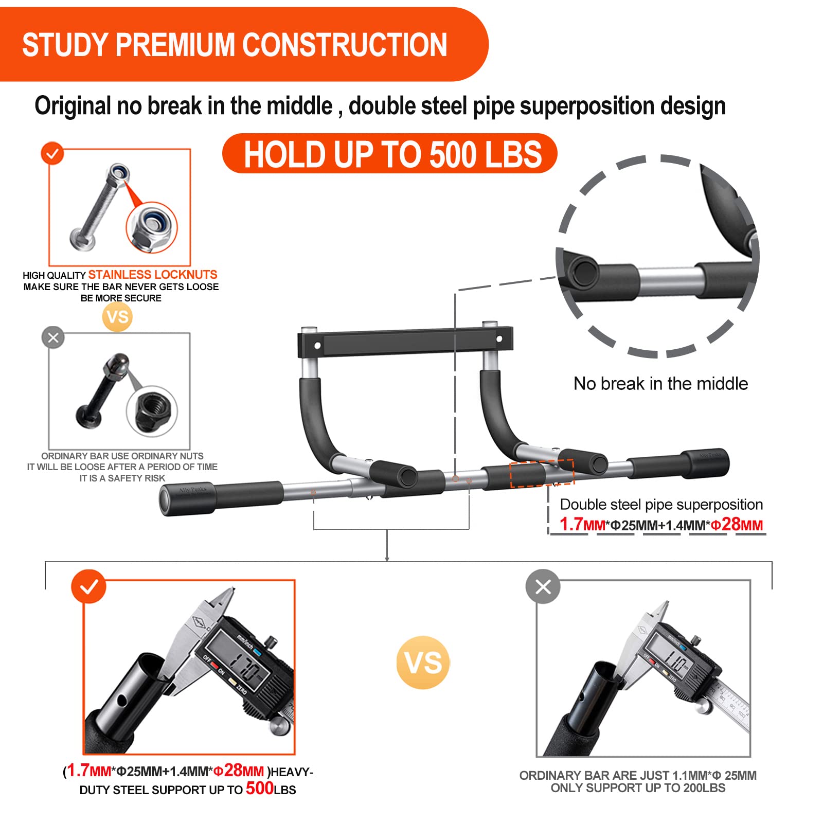 MULTI-FUNCTION HOME GYM:Target multiple upper body & core muscles with pull-ups, push-ups, dips, and hanging crunches.These multiple functions make working out quicker and more efficient.With this pull up bar, home and office become your gym.