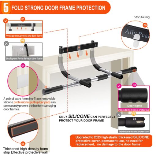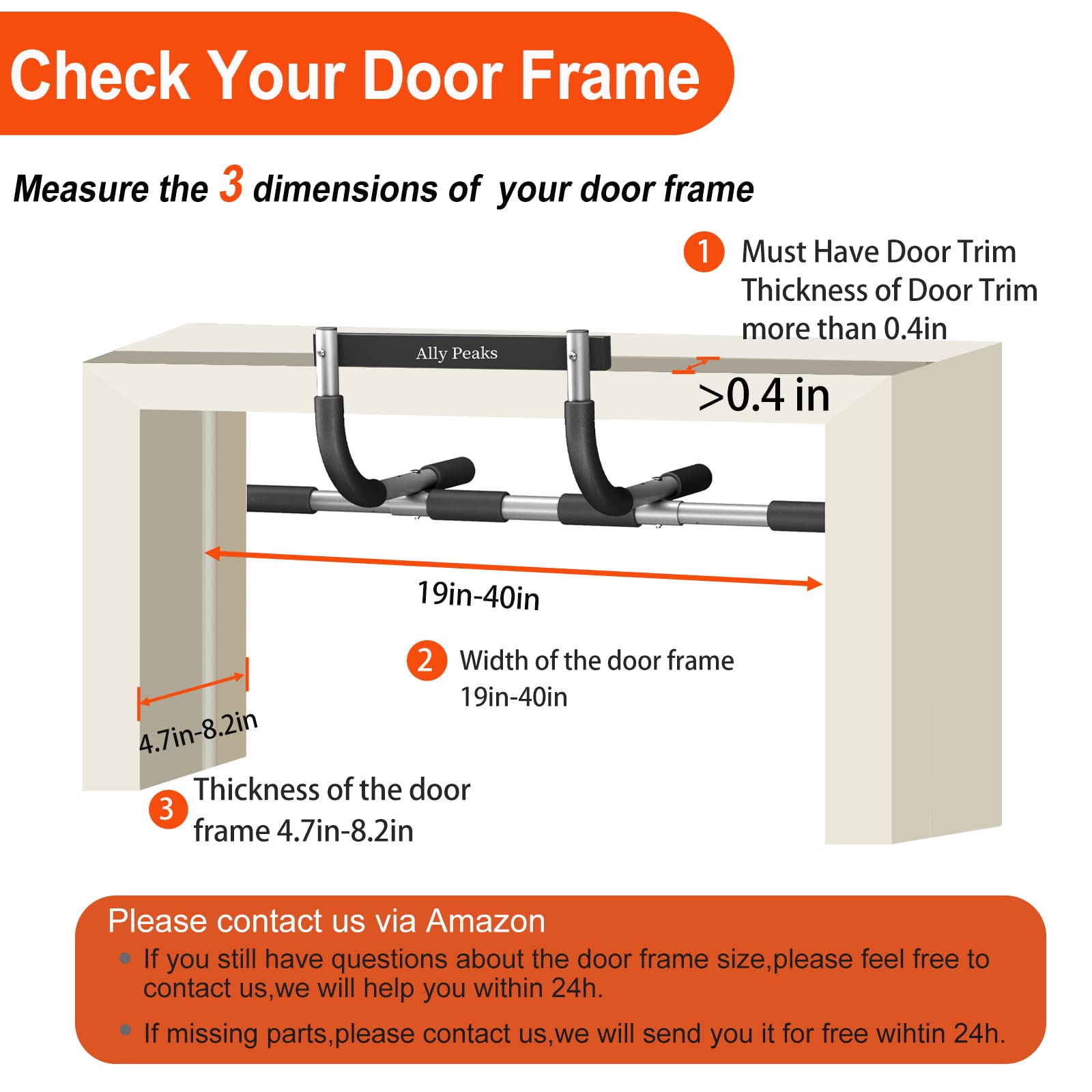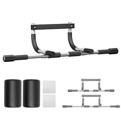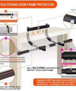 SECURE & SAFE: Simple and easy to install or uninstall and store when there is limited space. Heavy-duty chrome steel doorway pulls up bar and door mounts provide great support and safety. Before using the upper body workout bar tug down on the grips to make sure the unit is securely installed into door frame.
