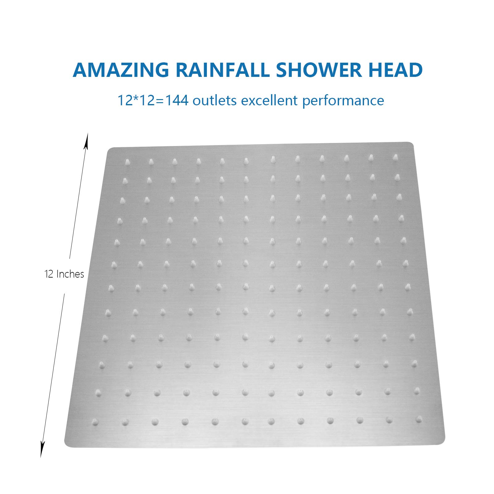 Be the first to review “Rain Shower head, NearMoon High Flow Stainless Steel Square Rainfall ShowerHead, Waterfall Bath Shower Body Covering, Ceiling or Wall Mount (12 Inch, Brushed Nickel)” Cancel reply