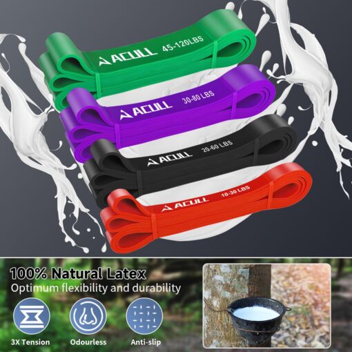- Four Different Colors and Strengths: These pull up assistance bands come in four colors, each denoting a different strength level: Red (10-30 lbs), Black (20-60 lbs), Purple (30-80 lbs), and Green (45-120 lbs). Mix and match or use individually to customize your resistance levels. With an 81.9-inch length, these bands offer versatile and tailored workout options.