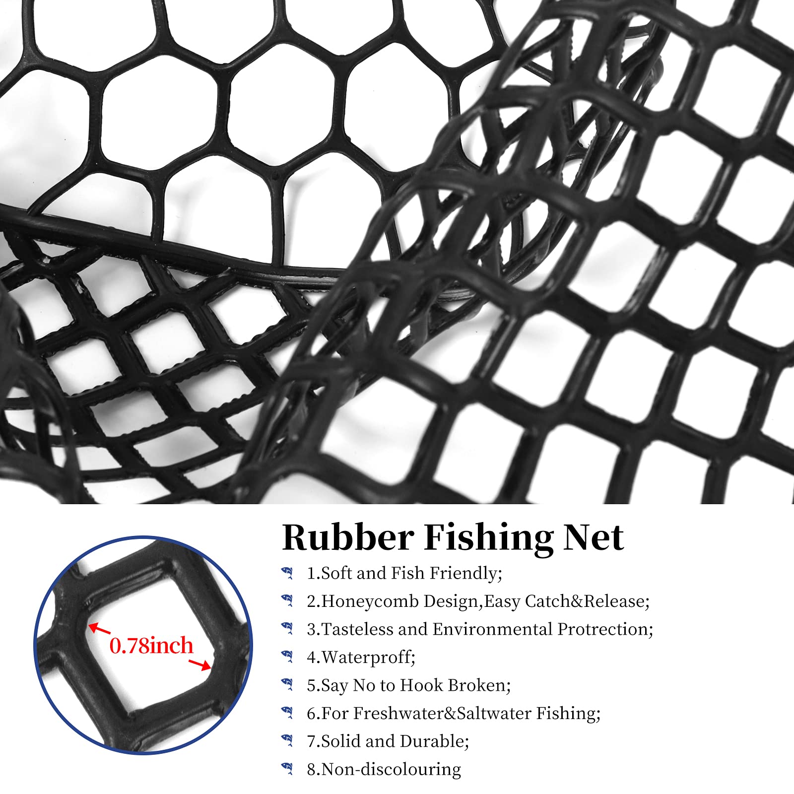 - STURDY RUBBER MESH–Easy to catch and release,No tangles.What we want to underline,fishing is a fair game , sometimes you need to throw a precious fish back to protect nature.The large soft rubber mesh net can help you return it unharmed,differnet from other nylon or rubber coated nets.