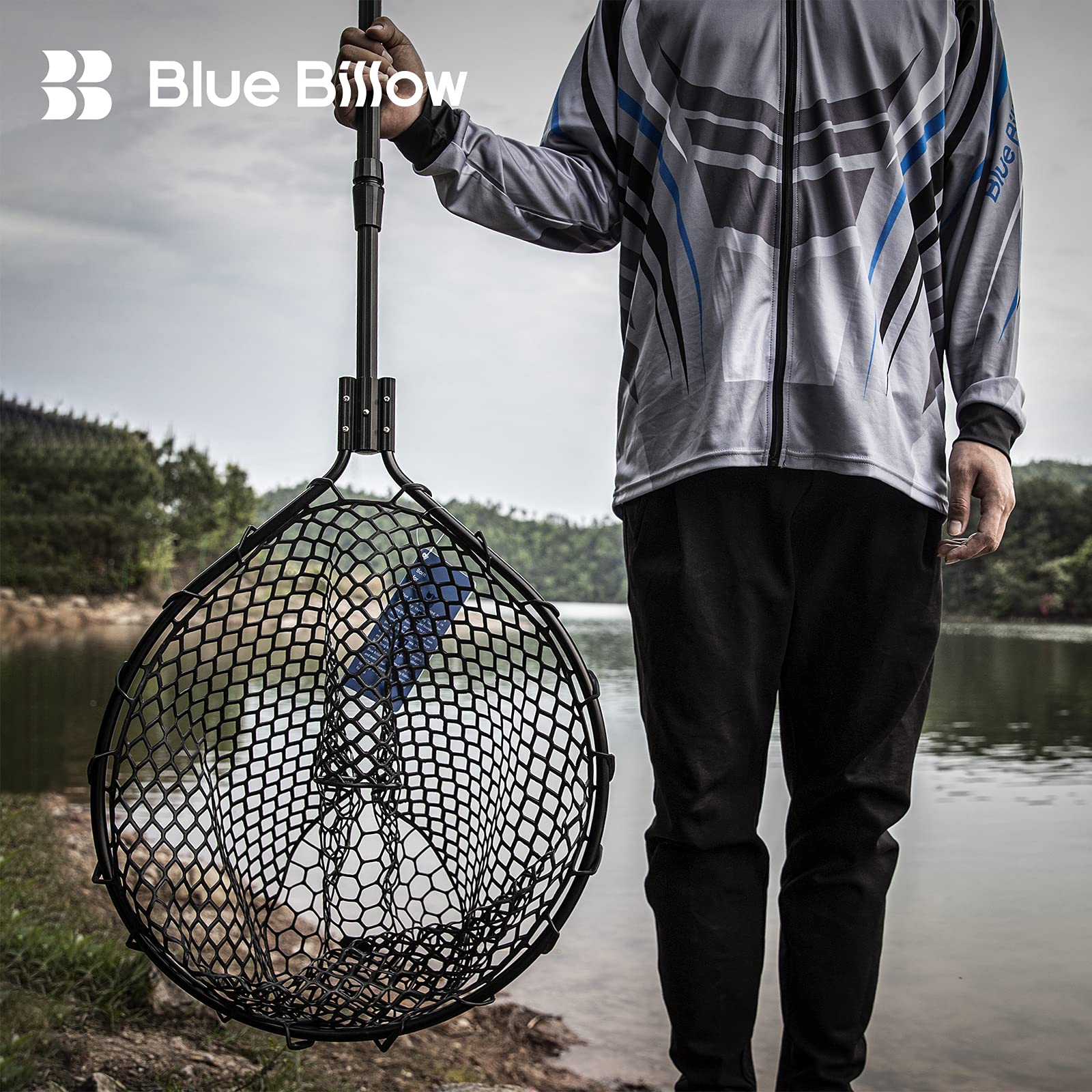 - PROFESSIONAL EQUIPMENT–The Blue Billow landing net is bulit to perform;featuring a stiff 3-peice handle,night black body color from electroplating technology,adjustable design for easier manoeuvrability and quick release.If landing a super big fish is a goal,the net gets the “assist”.
