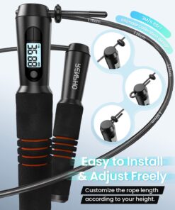 - Adjustable PVC steel wire rope: The jumping rope counter adopts 3M/9.85FT PVC steel wire rope that is durable and non-tangling. The PVC-wrapped steel rope can be suitable for almost any kind of floor like floor tile, wooden. No need for cutting and can adjust quickly.