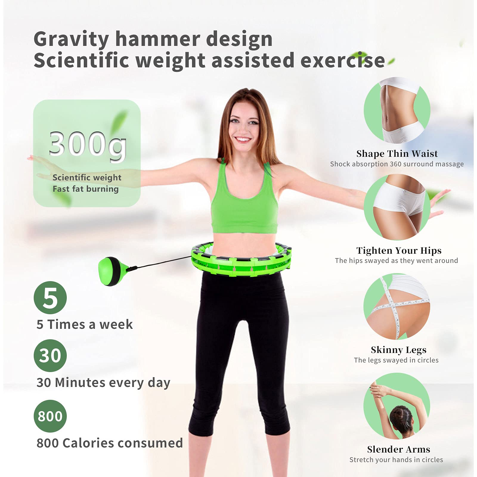 - 【Adjustable Exercise Intensity】 Smart Hola hoops is made of hard ABS plastic,A smart numerical display which accurately records the number of rotations of the pilates ring, the time spent exercising and other pieces of scientific fitness data. And different from the ordinary smart hoop, the user can change the number of weight-bearing blocks in the weight ball according to their own bearing capacity, and thus change their exercise intensity (1 to 4 weight-bearing blocks can be placed).