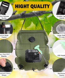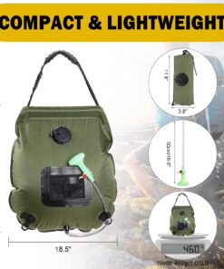 - 【Compact and Lightweight Camping Shower Bag with High Water Capacity】Our camping shower bag can carry up to 5 gallons/20L water for showering outdoor, let you enjoy a better and refreshing shower anywhere. In addition, our portable shower bag is so compact and lightweight that you can carry it in luggage, backpack or car trunk conveniently.