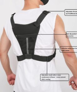 - Reflective Material used on the front of the chest pack and backside too. It’s for safety purpose in case lots of runners like running at nights Vest Shape Get Re-designed For back of Body !!!The concept Running Vest & Bag get perfectly connected, more comfortable and professional than a flat cloth panel.