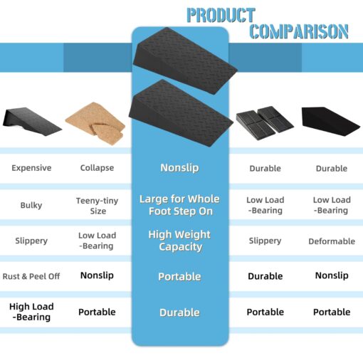 - WHY SHOULD I CHOOSE THIS SQUAT RAMP: This Slant Board Is Made By High Density Non-Slip Material And Designed for Heavy Duty. Provide Enough Support Yet Comfortable, More Portable Than Metal Slant Board for Squats, More Durable Than Cork Squat Heel Wedge, Larger Than Rubber Squat Wedges. Perfect for Barbell Lunge, Smith Squats and Bulgarian Split Squats.