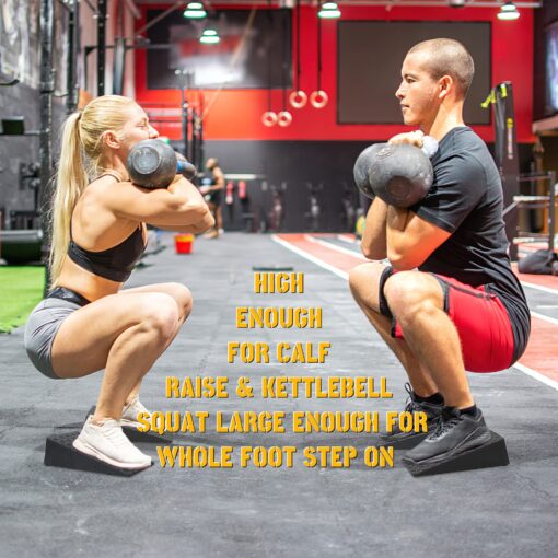 - YOU NEED SQUAT WEDGE BLOCK: Whether You Are A Pro Trainer or A Rookie, Squat with Your Heels Elevated Can Keep You in A Right Posture, Boost Strength Performance Instantly by Improve Your Poor Mobility for Hips, Knees, Ankles, Makes Your Muscles More Responsive and Sensitive During Exercise. Release Lower Back, Knees Hips and Ankles Stress, Reduce The Chance of Injury, Enhance Exercise Efficiency.