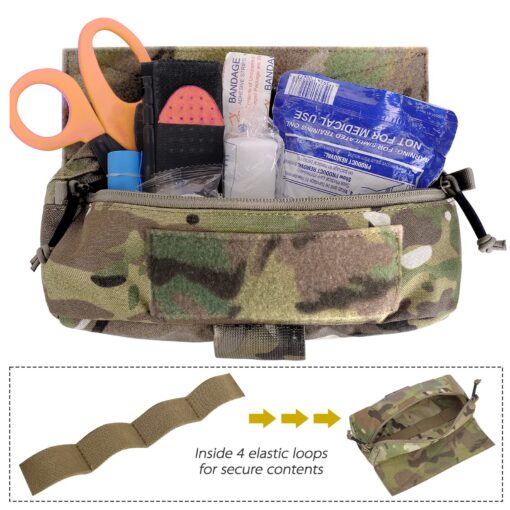 - *This tactical pouch design with elastic webbing inside for immobilizing objects like your keys, medical supplies, small tools, and everything else you need readily accessible.