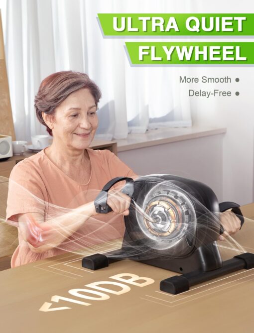 - 【Hyper Quiet and Smooth】: Thanks to the latest flywheel technology, Cyclace under desk bike has a much smoother system and less noise during exercise, only about 10 dB; There were no lags and it ran smoothly from start to finish; This could be used to improve physical therapy for people in rehab, as well as to improve the lack of blood circulation caused by a sedentary lifestyle and to restore and maintain motor function.