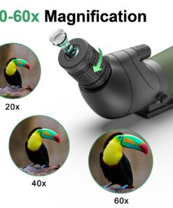 - Variable 20x to 60x magnification and dynamic lens focusing system – makes it easy to zoom in. Perfect for archery, bird watching, wildlife watching, hiking, camping, scenery, outdoor sporting, astronomical observation etc.