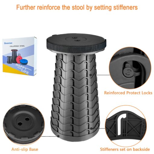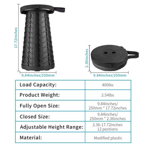 Be the first to review “Upgraded Folding Stool Lightweight Yet More Sturdy with Load Capacity 400lbs Portable Collapsible Stool Retractable Stool for Camping Fishing Hiking BBQ (Black)” Cancel reply