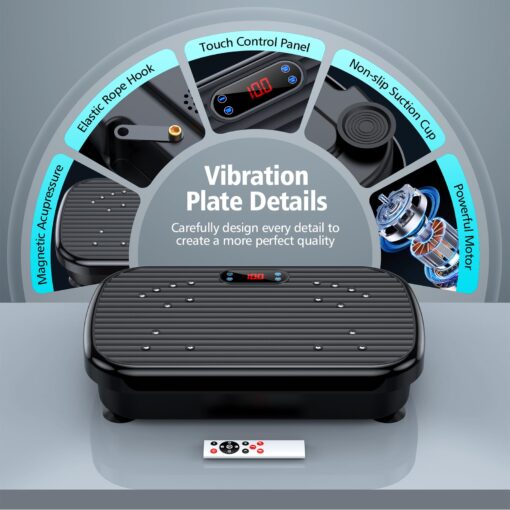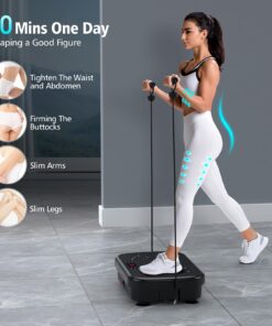- 【Feature-rich and efficient】Provides 5 workout modes, manual mode with adjustable vibration speed (1-180) and smart mode with 4 different frequencies. Comes with 2 resistance training bands to workout both upper and lower body. 10 minutes workout per day to increase bone mineral density, relieve and reduce stress levels.