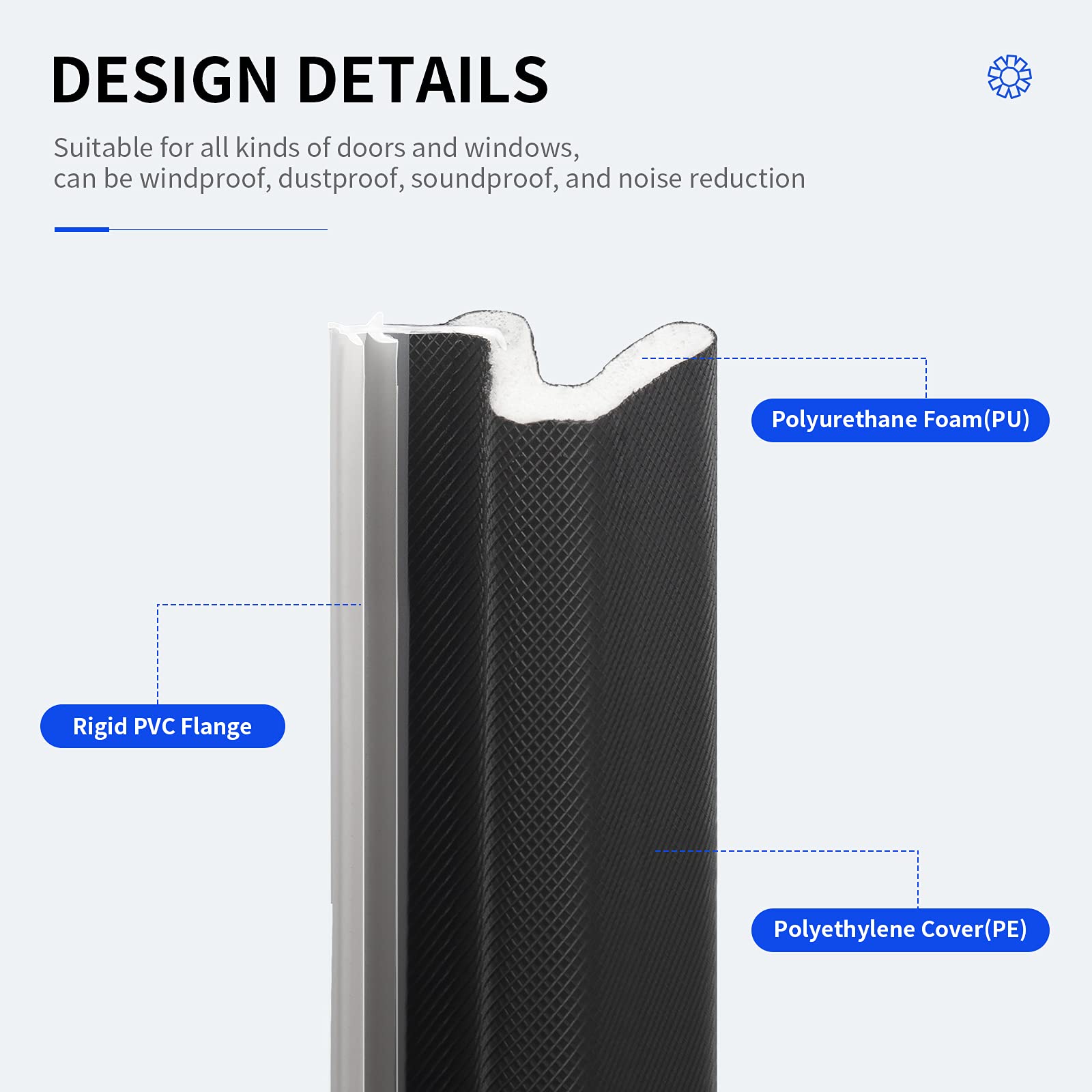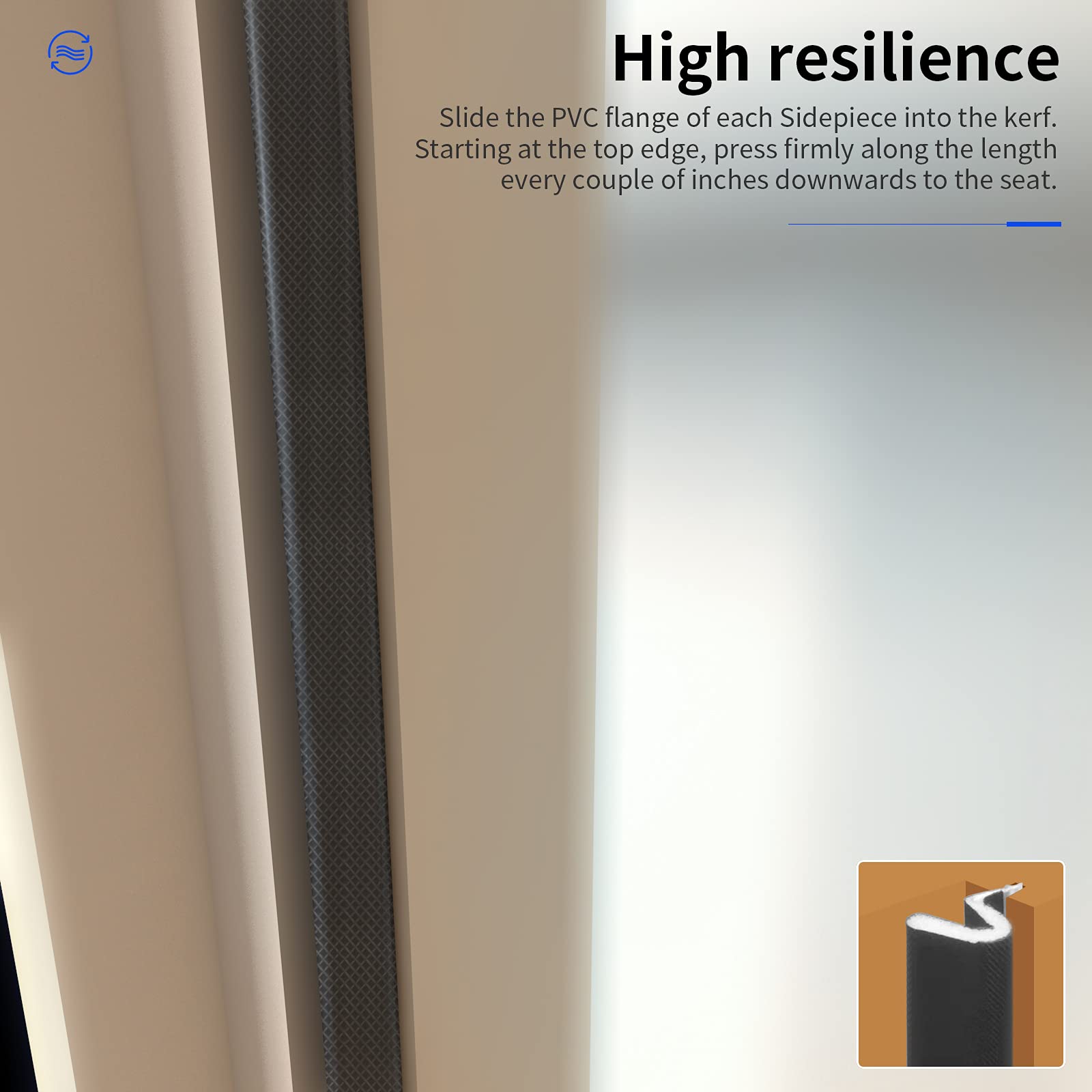 - Rigid PVC Flange very easily applied to kerf door frame.