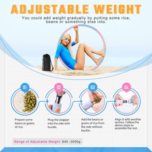 - 【Easy to Install & Disassemble】 Our adult weighted fitness equipment has 8 detachable sections. Measures 89cm/35.03″ inner diameter 94cm/37″ outside diameter. Exercise equipment for adults weight loss are easy to assemble and disassemble, convenient for you to store and carry. It can be wrapped in a small handbag. You can enjoy it anywhere at anytime.