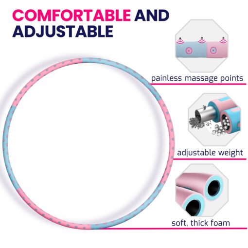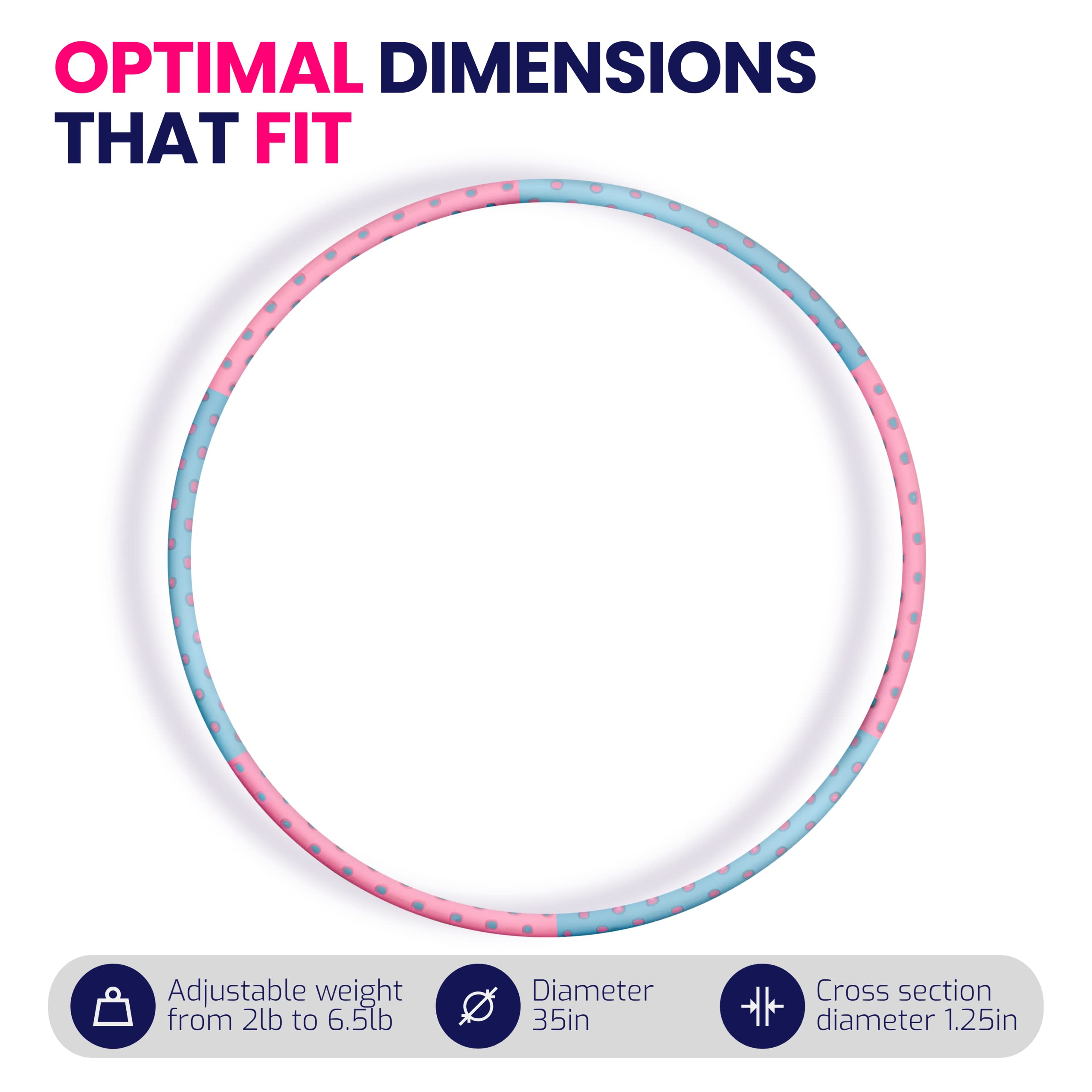 - Quality hula hoop that works for you means no more sepnding extra money replacing plastic adult hula hoops with thin foam rubber full of cracks after 10 minutes of use! No more awful, painful bruises around the waist thanks to poor quality plastic not weighted hoop for adults which weight just under 1 kg! No more struggling while excercising with hula hoop weighted at home. We designed to fit nearly everybody, weighted hola-hoop – that will last for years with your fitness home equipment.